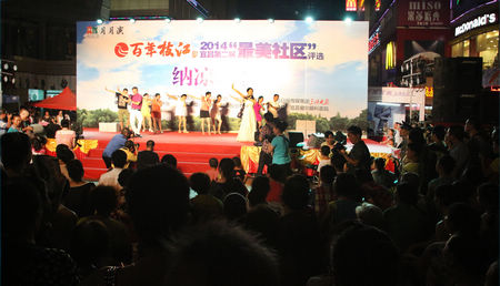 8月2日晚,由枝江酒業(yè)獨(dú)家冠名、宜昌市文明辦、三峽晚報等單位聯(lián)合舉辦的宜昌市第二屆“最美社區(qū)”評選之首場納涼晚會在宜昌市時代廣場步行街盛大啟幕。在2個小時的晚會上,專業(yè)演員、民間達(dá)人和普通群眾輪番亮相,共同演奏了一曲既高大上,又接地氣的“夏日市井交響樂”。表演過程中,不時有枝江酒業(yè)提供的競猜獎品送出,居民們參與互動的熱情很高。