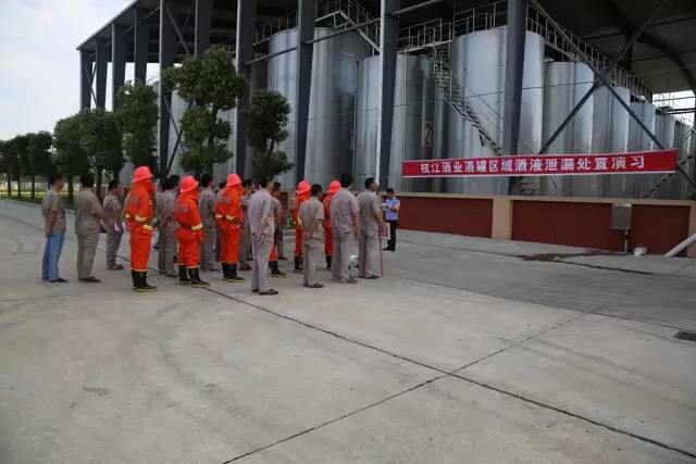 隨著一聲令下,現(xiàn)場警戒組、管道堵漏組、沙袋堵漏組、射水稀釋組進入罐區(qū)展開應(yīng)急處置……6月23日上午8時30分,一場緊張有序的酒罐區(qū)域酒液泄漏處置演習(xí)在枝江酒業(yè)五萬噸灌裝中心舉行。此次演習(xí)旨在提高酒庫員工對酒體泄漏的應(yīng)急處置能力,檢驗公司微型消防站戰(zhàn)斗人員的實戰(zhàn)技能,增強全員安全意識。